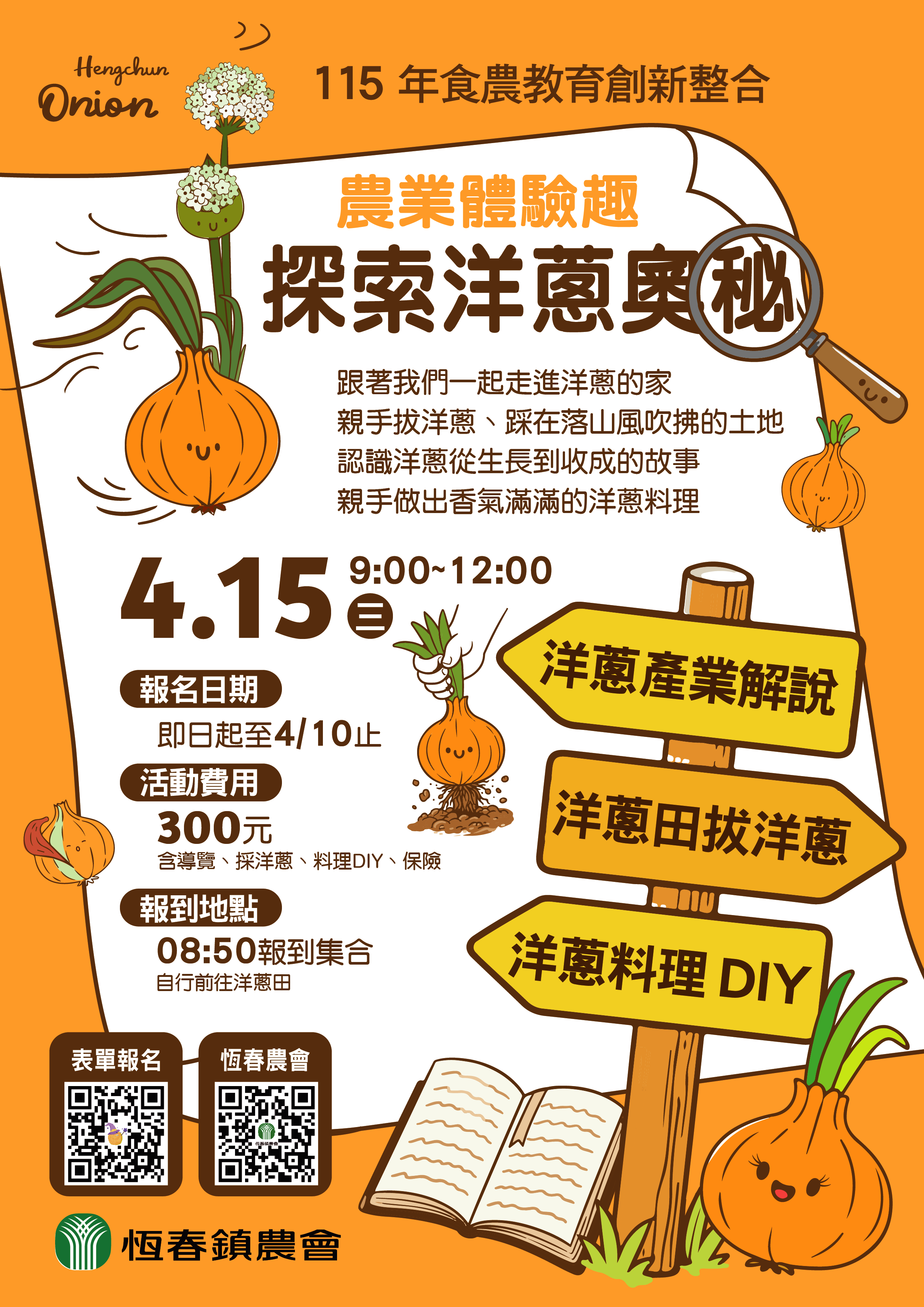 ????【恆春鎮農會|洋蔥體驗活動開放報名】????