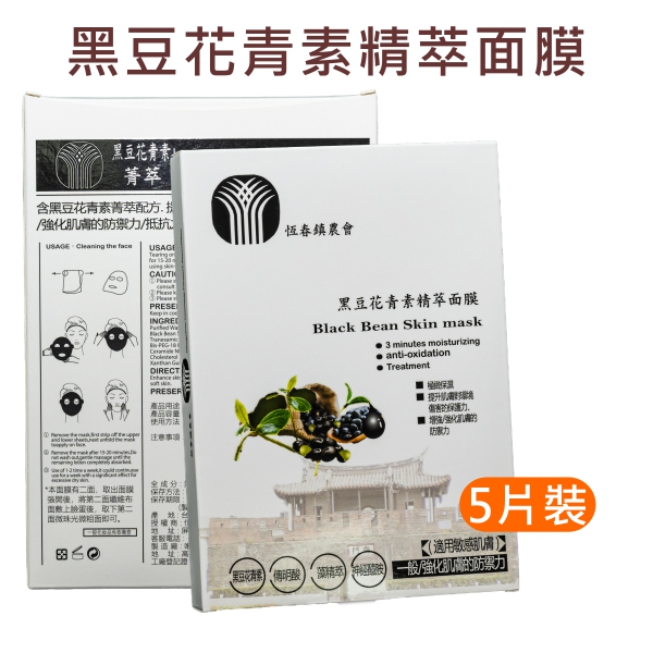 - 黑豆花青素面膜:含黑豆花青素菁萃配方,提升肌膚對環境傷害的保護力、增強、強化肌膚的防禦力、抵抗力、表皮的防護能力。
