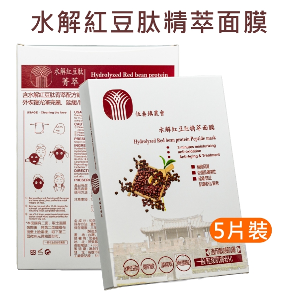 - 水解紅豆肽面膜:含水解紅豆肽菁萃配方,維持、回復、恢復肌膚彈性,使肌膚由內而外恢復光澤亮麗,延緩、防止肌膚老化、衰老。