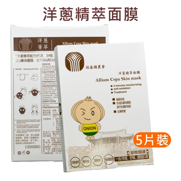 - 洋蔥面膜:含洋蔥菁萃配方修護、舒緩、調理肌膚、平衡肌膚油脂分泌、形成肌膚保護膜,提升肌膚舒適度。